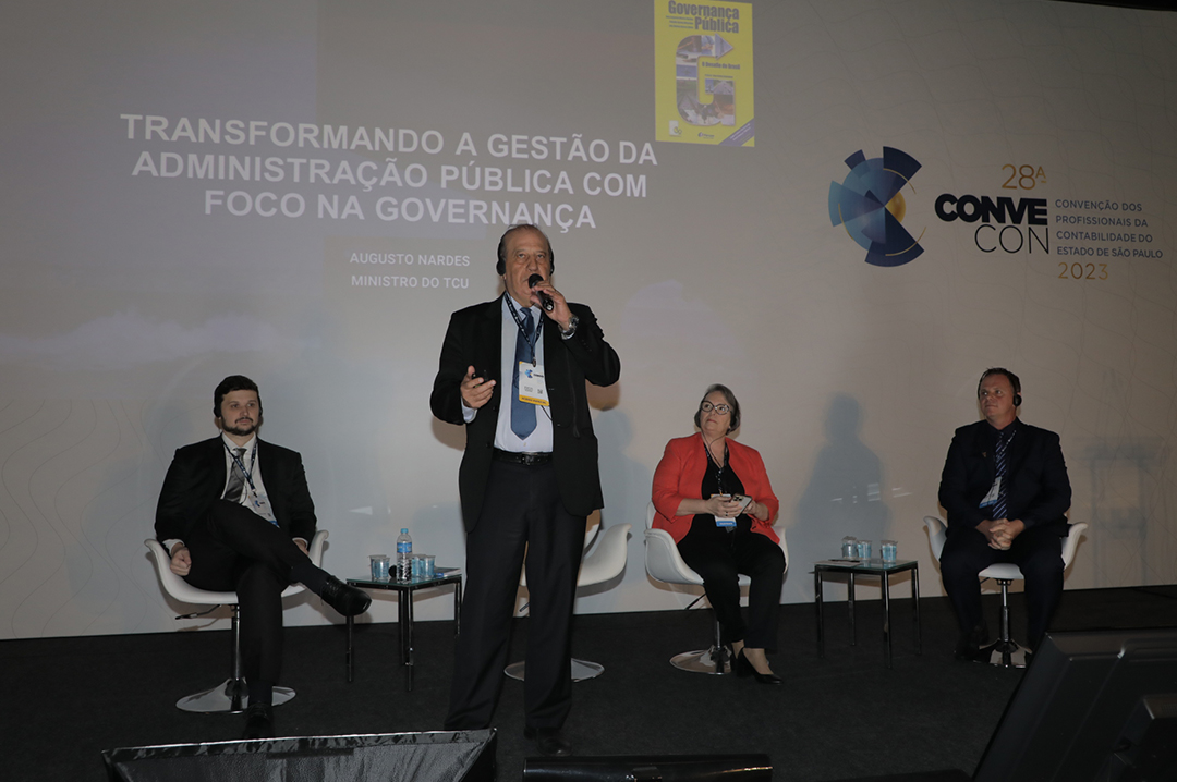 Palestra sobre custos aplicado ao setor público de Cezar Mauss em São Paulo no Convecon, evento promovido pelo CRC/SP, onde houve o debate sobre a Governança Pública com o ministro do TCU Augusto Nardes.