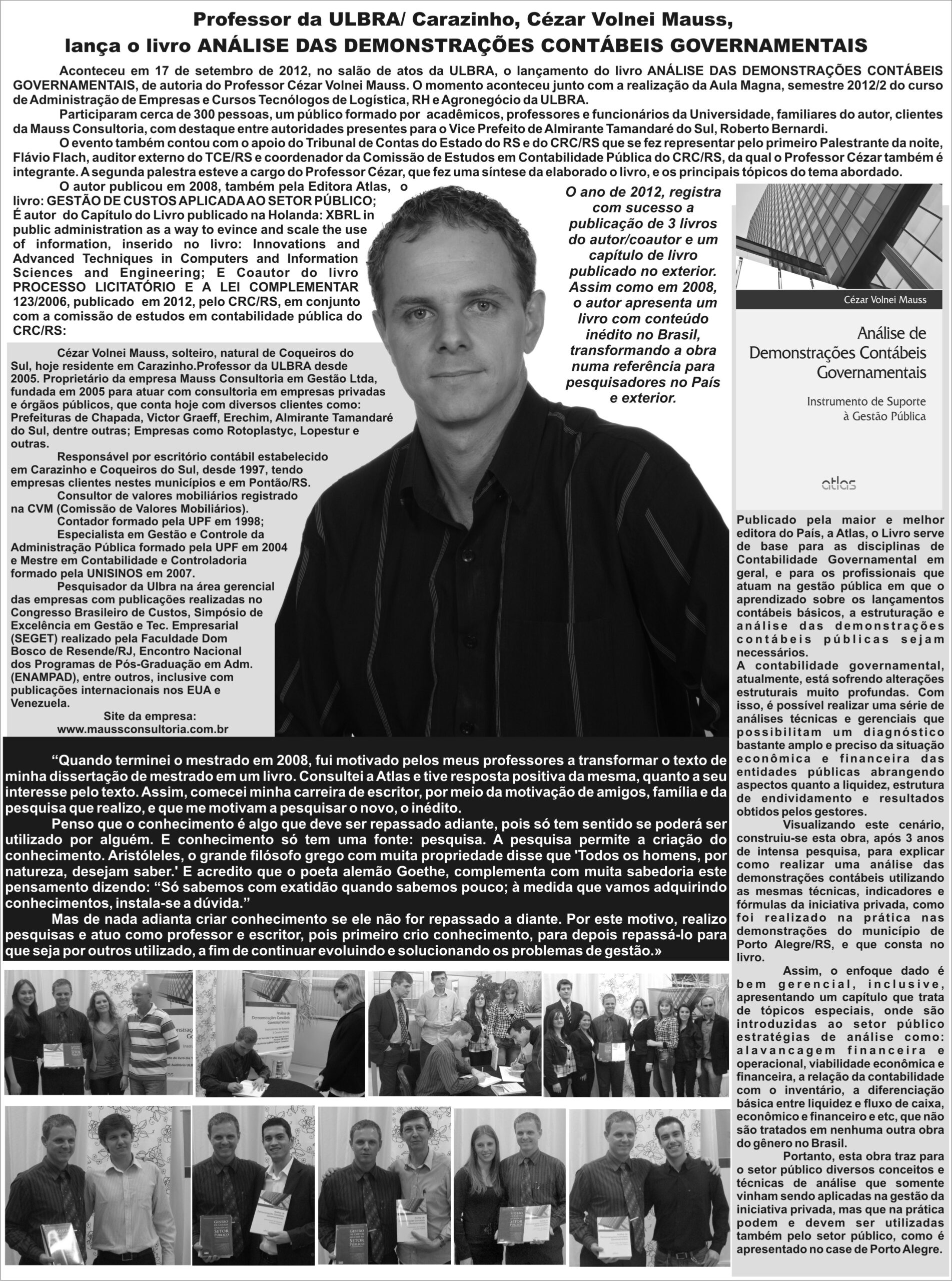 Em 2007, no Mestrado em Contabilidade e Controladoria da Unisinos de São Leopoldo-RS, o Contador Cézar Volnei Mauss, buscou qualificação e aprimoramento de suas técnicas de gestão.